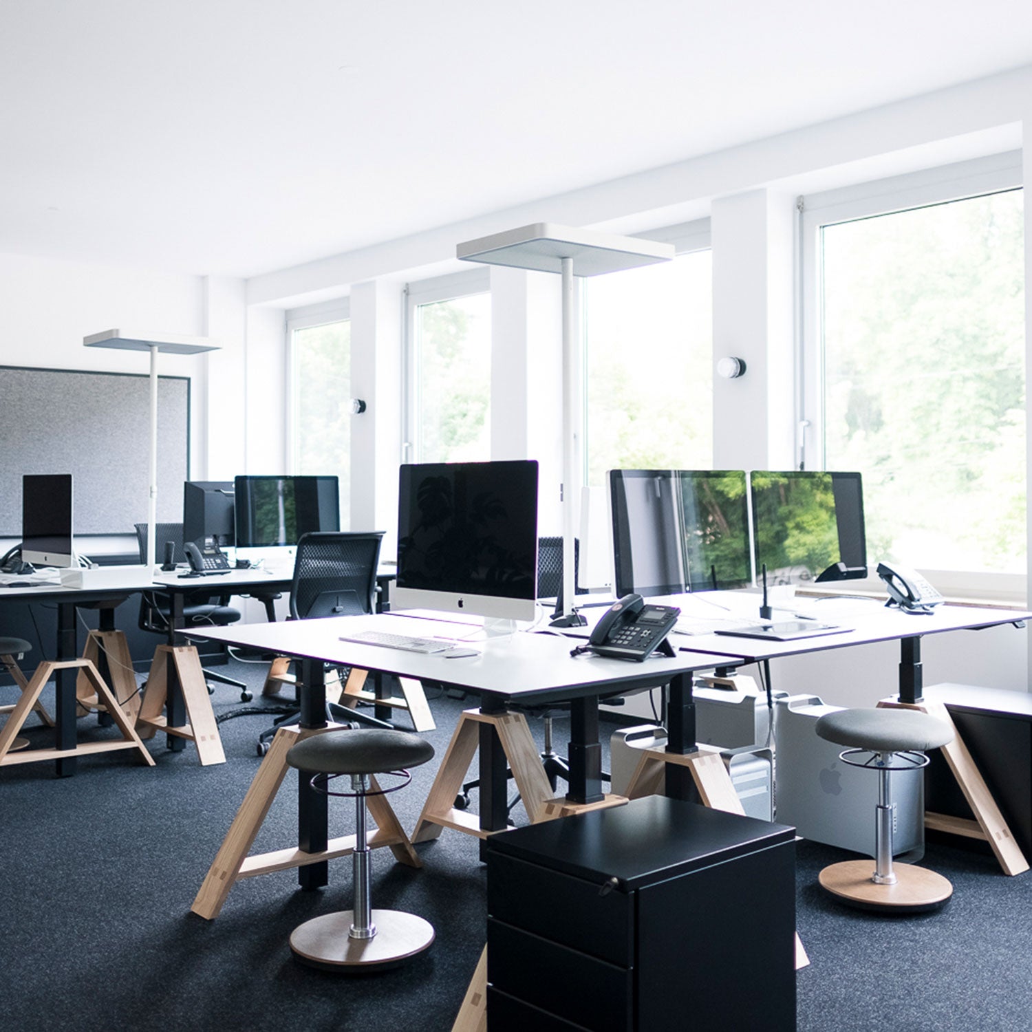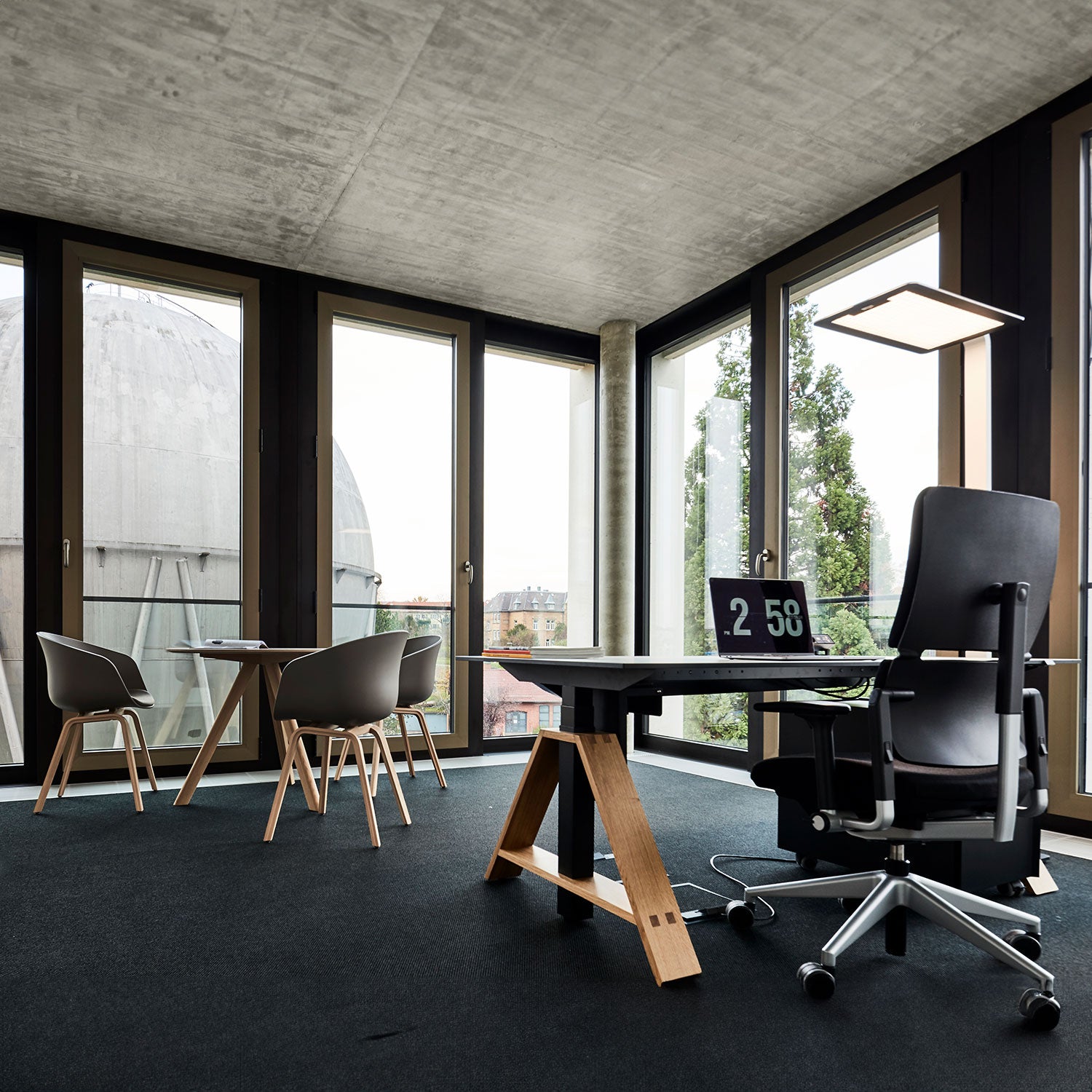 Ob Vorstandsbüro oder Fokusarbeitsplatz - Hochwertige Oberflächen und Tischausführungen machen Freude. Massivholzgestelle und Arbeitsplatten aus Esche, Eiche oder Linoleum sorgen für ansprechende Arbeitsumgebungen.