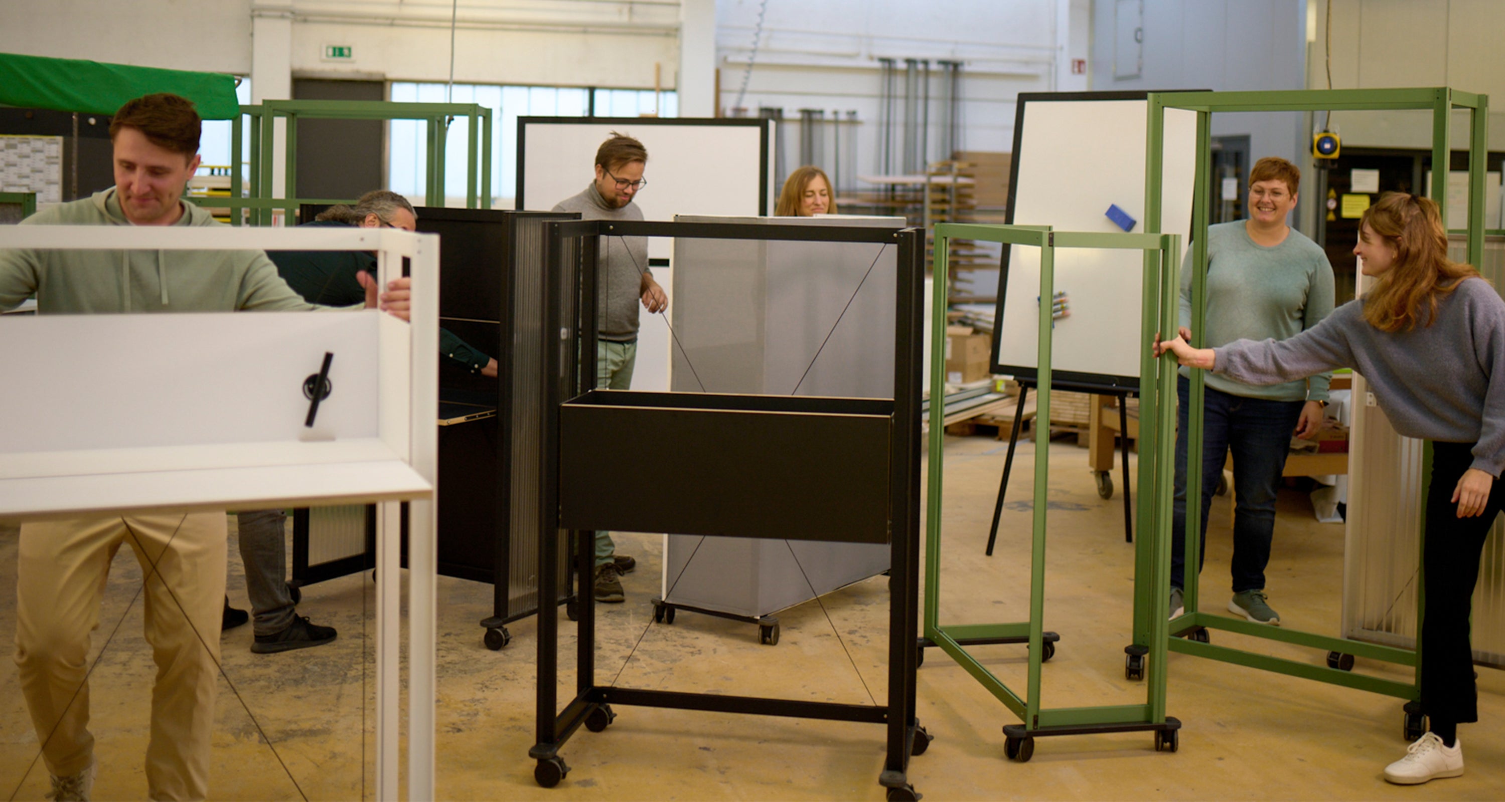 Wir machen handwerklich hergestellte Büromöbel, mit denen Sie agil arbeiten und denken können. Unsere Möbel bieten genau den Raum und die Tools, die Sie brauchen. Und was Sie brauchen, verändert sich eben. Teams wachsen oder verkleinern sich, Präsenz und Homeoffice wechseln sich ab. Sich mit flexiblen Möbeln zu umgeben, macht etwas mit uns. Probieren Sie es aus!