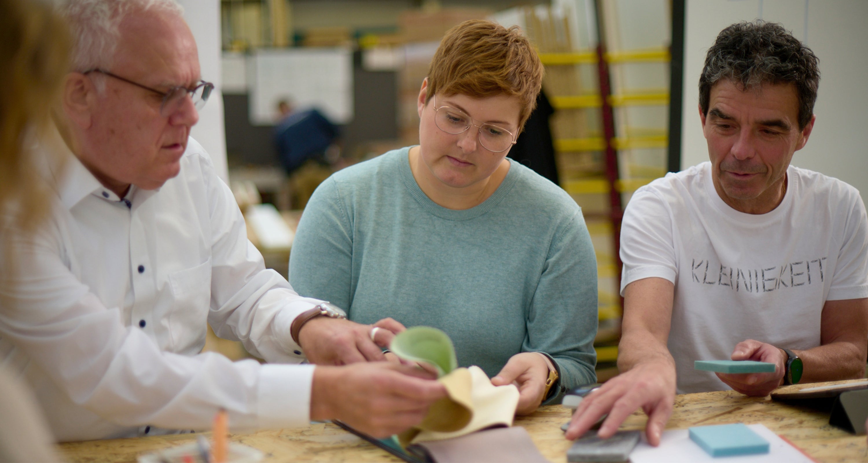 Die Fertigung unserer Möbel und Raumsysteme findet überwiegend bei uns im Haus statt. Wir nutzen dafür unsere hocheffiziente Infrastruktur aus dem Innenausbau – und unser Know-how. Als mittelständisches Unternehmen ist es uns wichtig mit Zulieferbetrieben aus der Region zusammenzuarbeiten. Daraus entstehen kurze Transportwege und langfristige Geschäftsbeziehungen. Wir leben faire Kooperationen auf Augenhöhe und im direkten Austausch mit unseren Partner:innen.