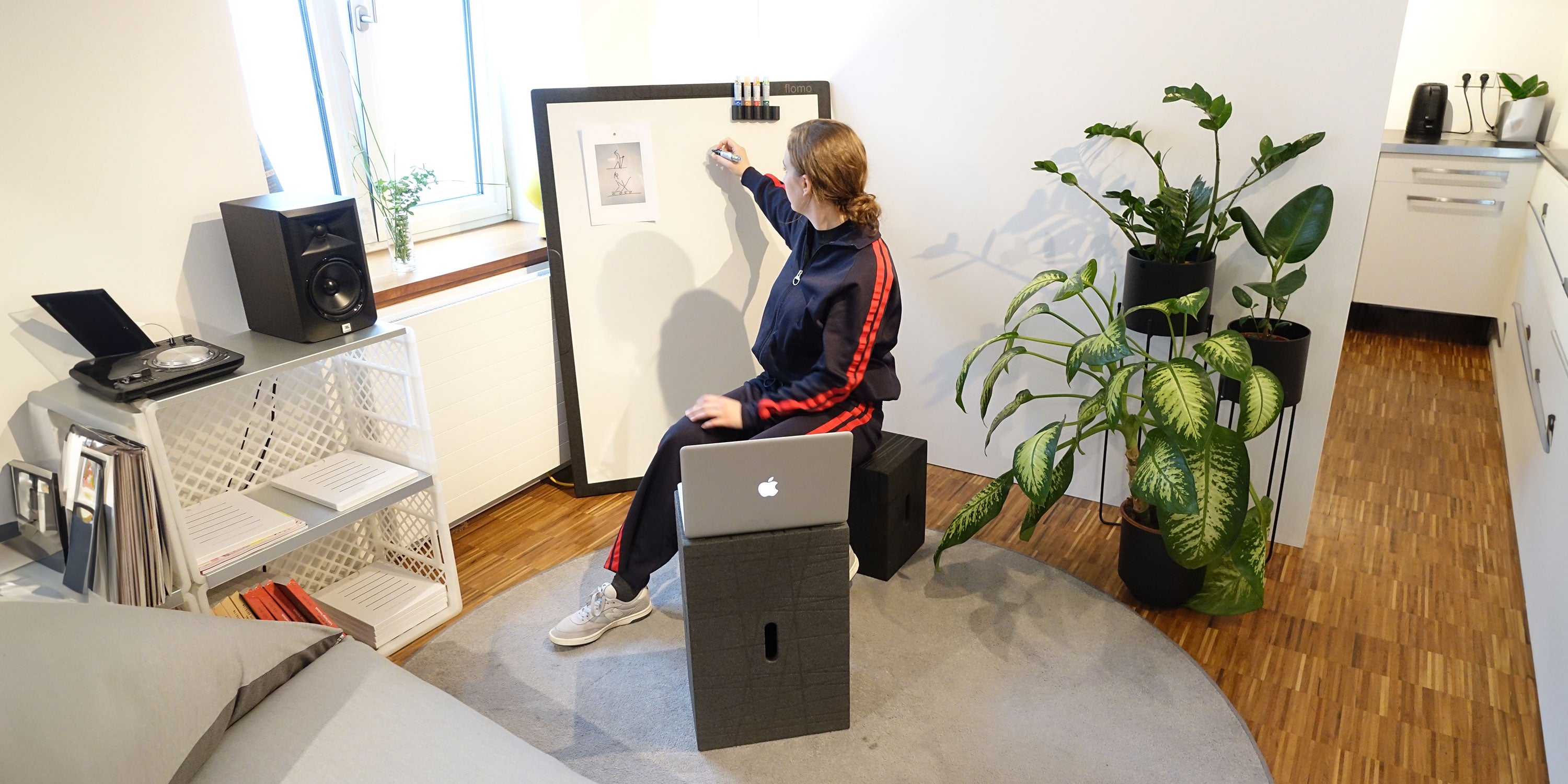 Alles hat seinen Platz, die Arbeitsumgebung ist ansprechend gestaltet, äußere Einflüsse können abgeschirmt werden. Dinge, die im Büro als selbstverständlich wahrgenommen werden, müssen im Homeoffice genauso konsequent umgesetzt werden – das ist ein Prozess, müssen sich die Flächen doch wandeln, wenn kein fester Arbeitsraum vorhanden ist. Hier helfen Möbel wie flomo labcase und motu Sputnik I, Kleinstarbeitsplätze auf denen der Arbeitsplatz fest definiert ist. Auf Rollen und somit agil, lassen sich die Möbel zur Seite schieben, wenn der Alltag die Arbeit ablöst.