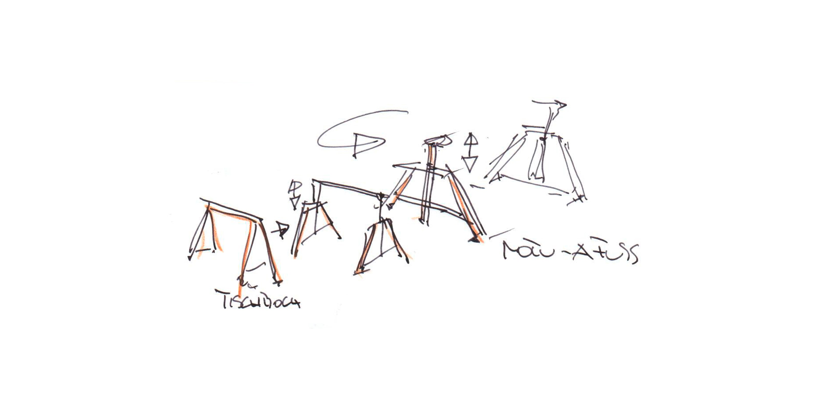 Der seit Generationen bewährte Bocktisch ist der Pate. Sein Patenkind allerdings steckt voller zeitgemäßer gestalterischer und konstruktiver Innovationen. Den A-Fuß-Rahmen gibt es vertraut aus Metall oder – ein Novum bei elektrisch höhenverstellbaren Tischen – aus Holz.