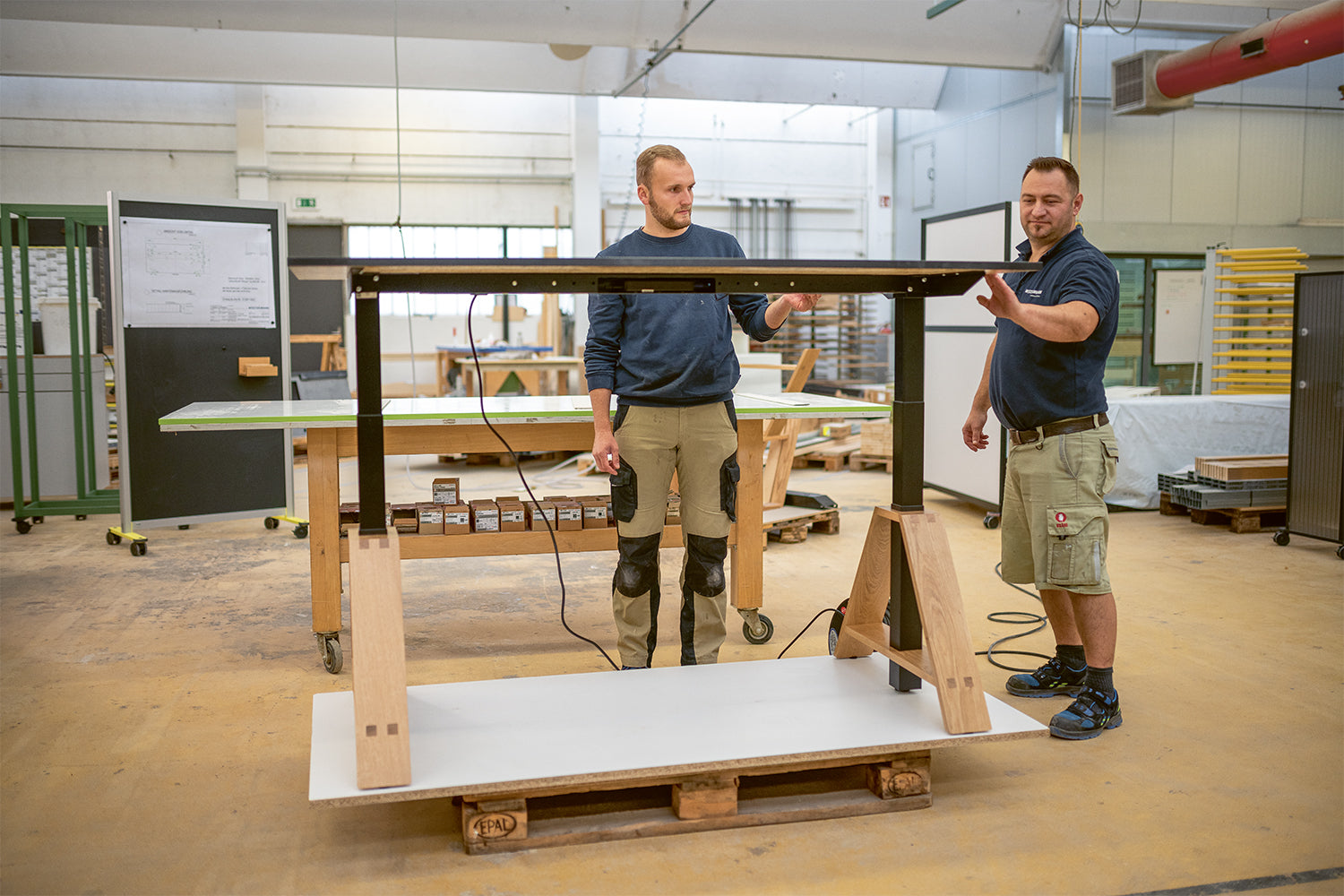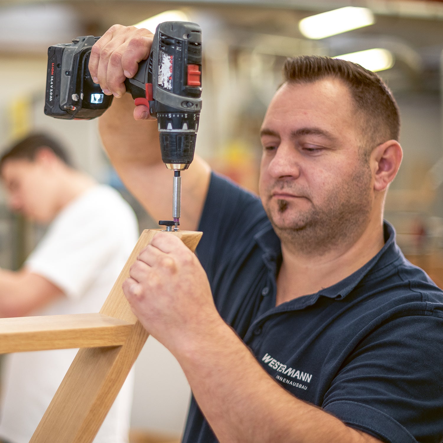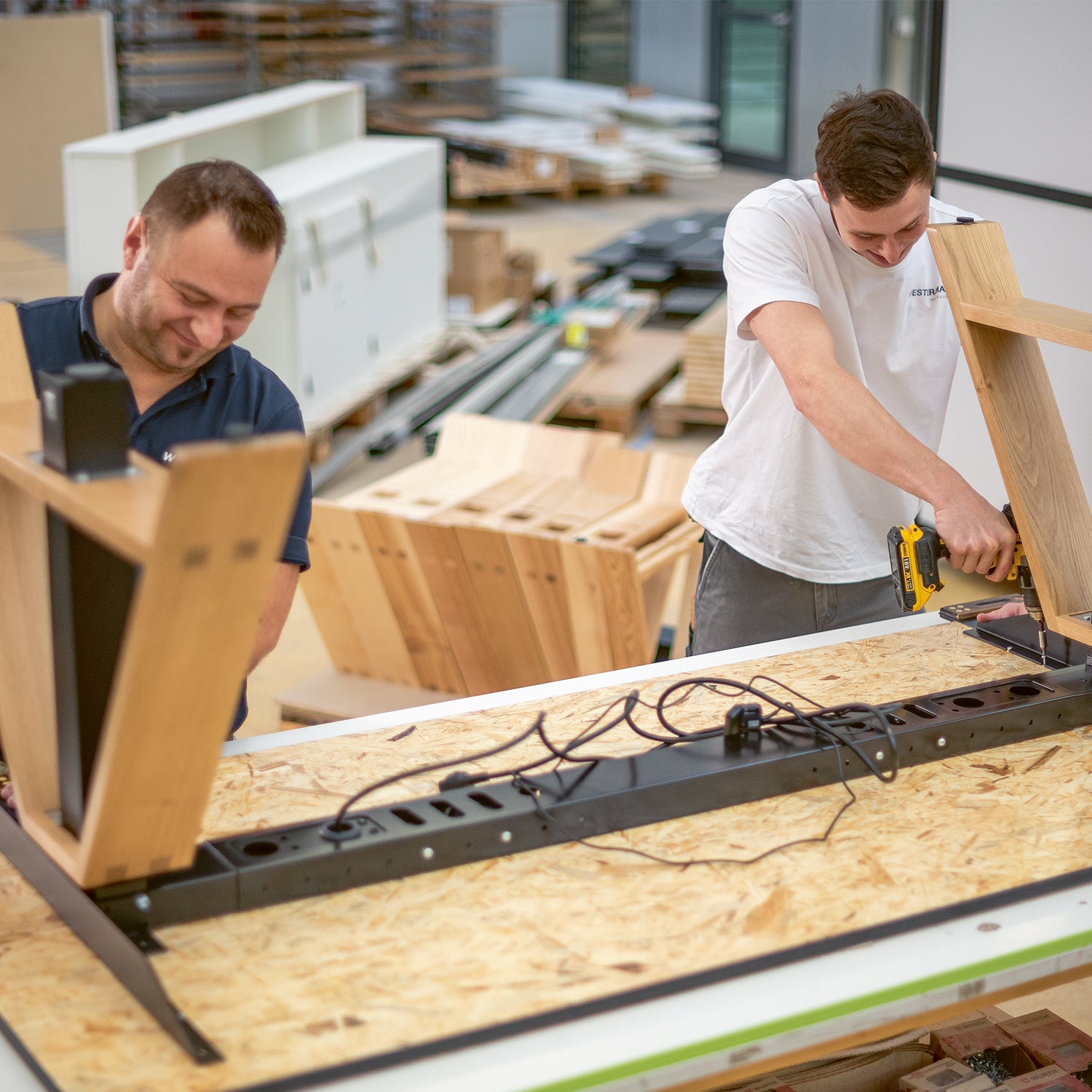 Hohe Fertiegungstiefe: Serienfertigung und handwerklich hergestellte Einzelstücke aus Holzwerkstoff und Massivholz.
