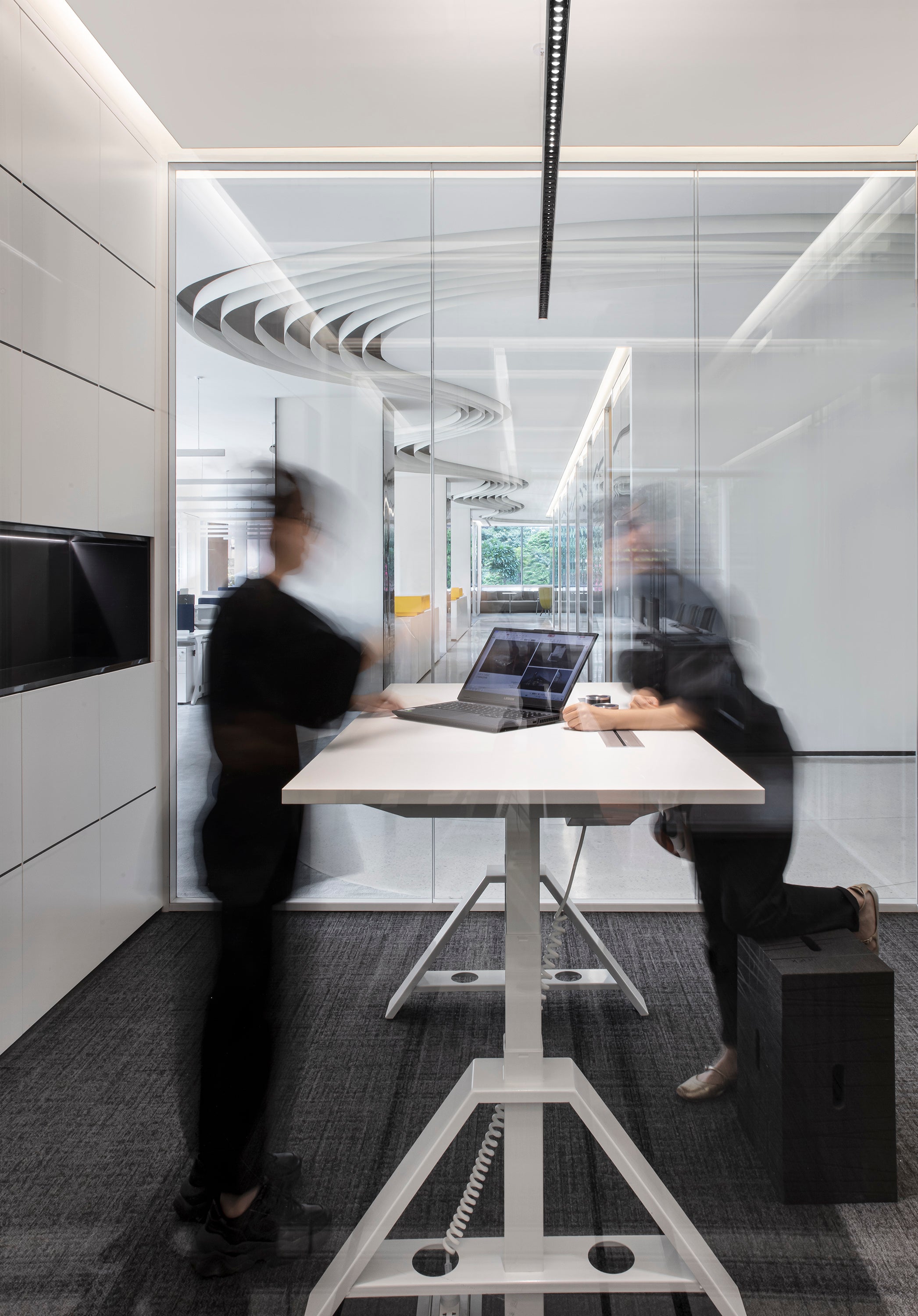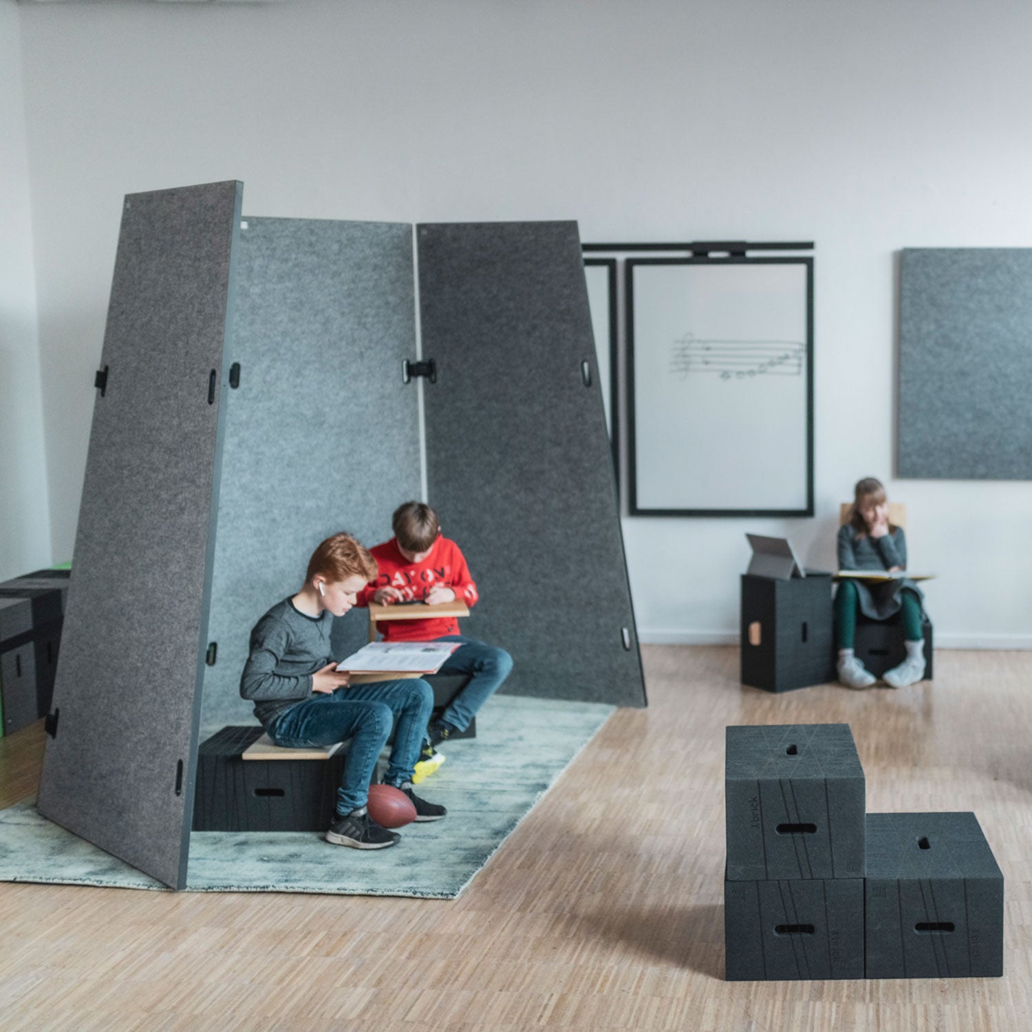 Die Wand aus Akustikschildern lässt sich schnell und mühelos dort platzieren, wo sie zur Zonierung gebraucht wird.