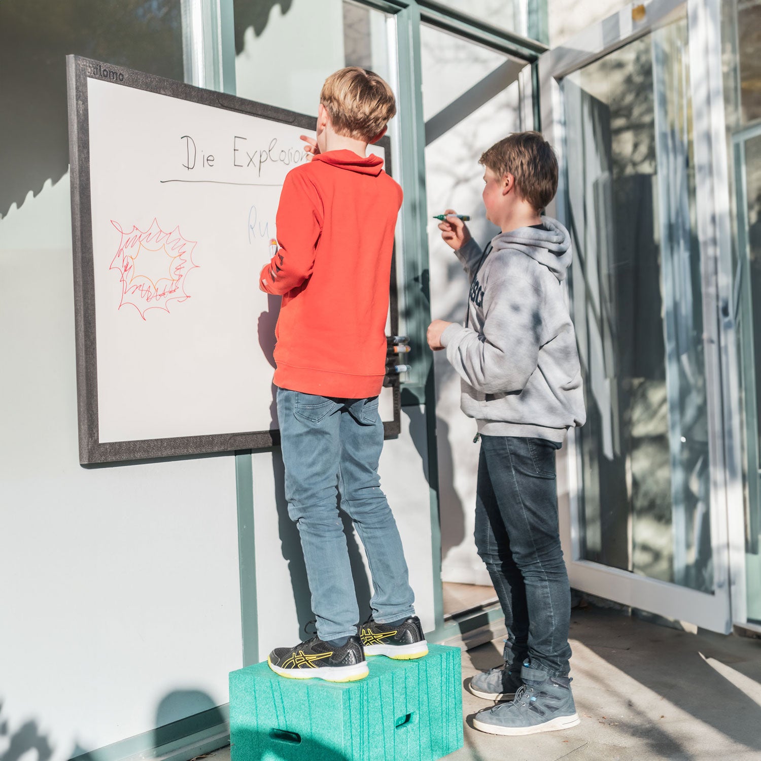 Das Whiteboard flomo board ist hochmagnetisch, leicht, mobil, robust und lässt sich durch sein innovatives Klettsystem überall befestigen.