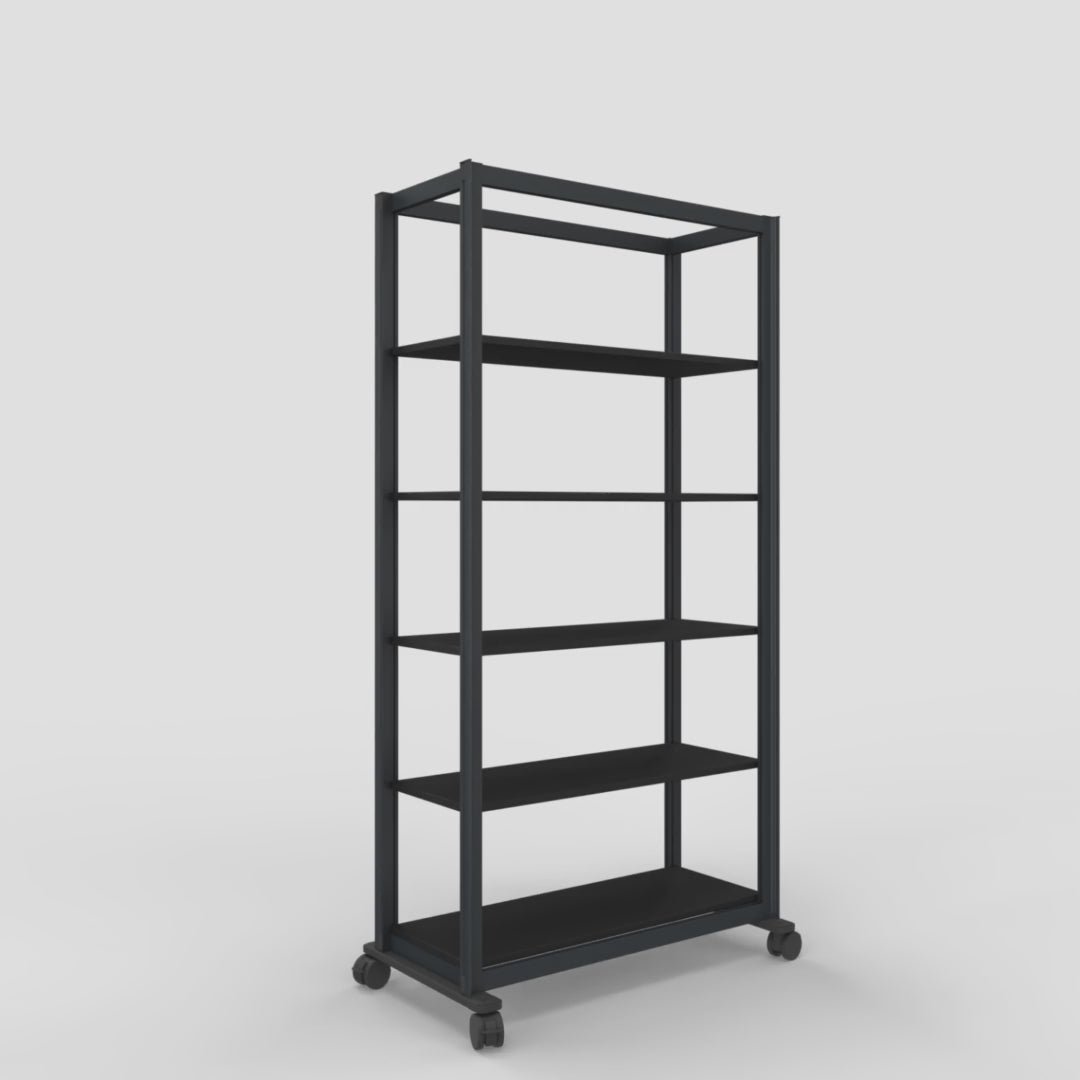 Der flomo train ist ein mobiles und wandelbares Büromöbel, es ist zugleich ein fahrbarer Stauraum, Präsentationselement, akustisch wirksamer Raumteiler und ein multifunktionales Regal.
