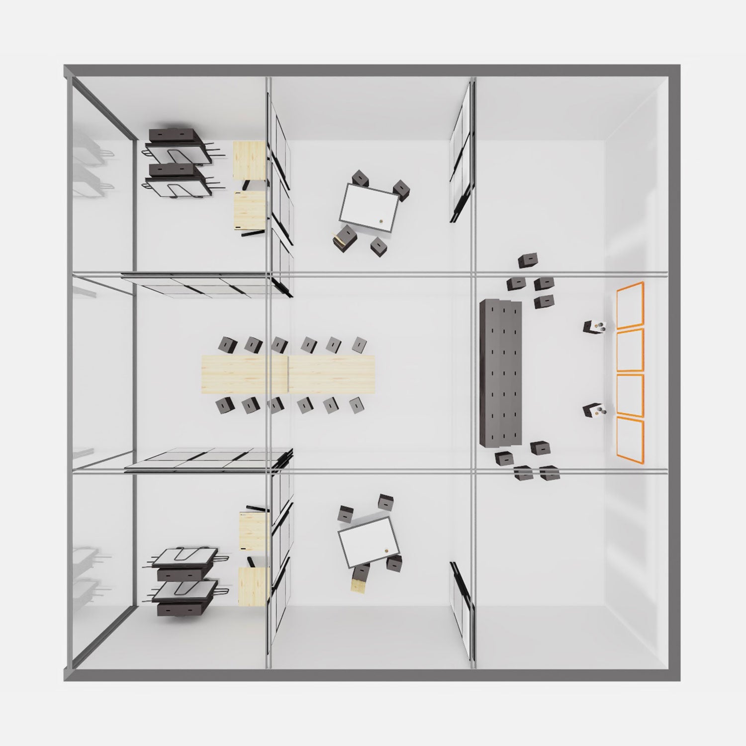 Der flomo wall Trennwand Raumteiler sorgt für visuellen und akustischen Schutz im Büro. Er zoniert offene Büroflächen und schirmt Teams durch einen effektiven Sichtschutz ab. Die unterschiedlichen Füllungen ermöglichen es, die Rahmenkonstruktion der Trennwand individuell zu bestücken. Von puristisch ganz ohne Füllung über minimalistische Akustikfilz-Platten bis hin zu geschlitzten Multiplex Holzelementen. Die flomo wall ist einfach zu montieren, bietet eine flexible Zonierung von Räumen und ist durch ihre Kreuzungspunkte mehrläufig einsetzbar.